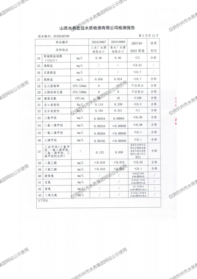 忻州城區(qū)公共供水水源水、出廠水、管網(wǎng)水、管網(wǎng)末梢水2024年10月份水質(zhì)信息公示