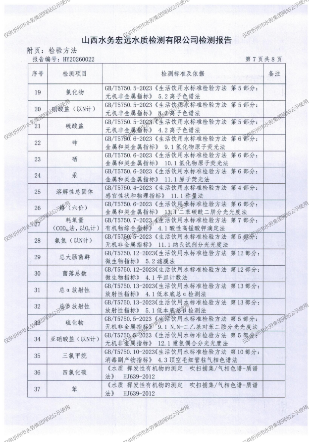 忻州城區(qū)公共供水水源水、出廠水、管網(wǎng)水、管網(wǎng)末梢水2026年2月份水質(zhì)信息公示